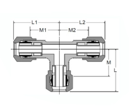 64NAB er en 1-delt nylon-rørforening-tee med innebygd begrensning og trykkavlastning. Enheten er designet for bruk i luftbremsesystemer, men kan brukes til andre applikasjoner.