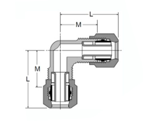 Denne unions albuen er tilgjengelig i et bredt spekter av størrelser og brukes til applikasjoner som sekundære luftturlinjer og hydrauliske bremsapplikasjoner, inkludert primær- og sekundærlinjer.