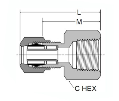 NPTFCL1466-4A1 er en rett rumpe-conektor som har 3/8 tommer. Rørtråd i hver ende, med en 1/16 tommer. Mutter inkludert per side.