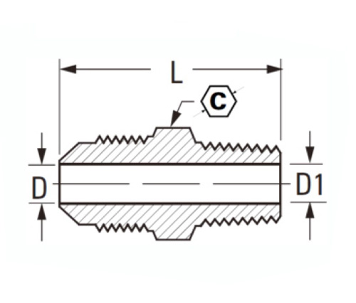 Denne modifiseringen er vanligvis i lengden på rørtrådene, brukt i rørleggerarbeid og lette industrielle applikasjoner