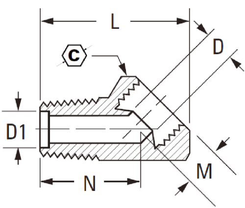 Den 352 messing omvendt fakkel 45 ° mannlig albue er designet for gasser og væsker, og oppfyller funksjonelle krav til SAE J512 i størrelse 1/8 "til 1". Måling 0,94 ”i utvendig diameter.