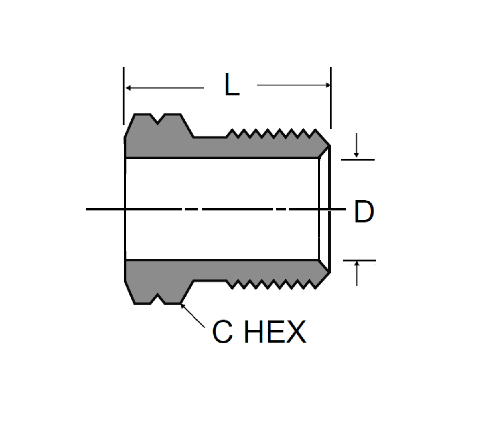 Tråd - den ene enden ytre type mannlig tråd, indre pol kvinnelig tråd. Andre ende 1/4 tommer hannrørstråd.